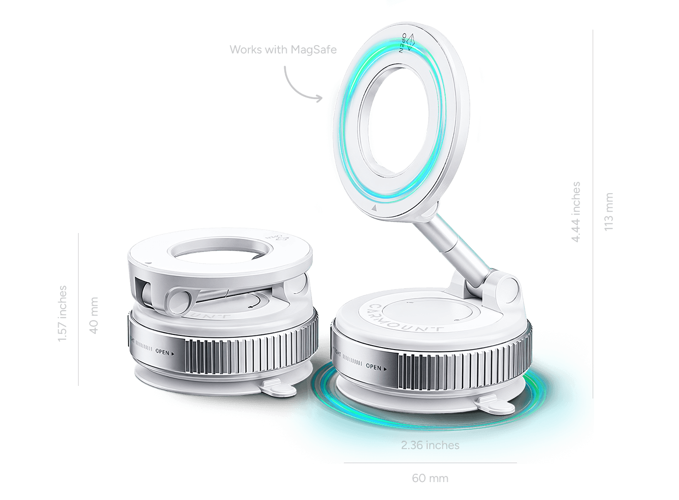 Snap your iPhone directly onto the MagSafe head. Don’t have MagSafe? Use the included metal ring for secure attachment.